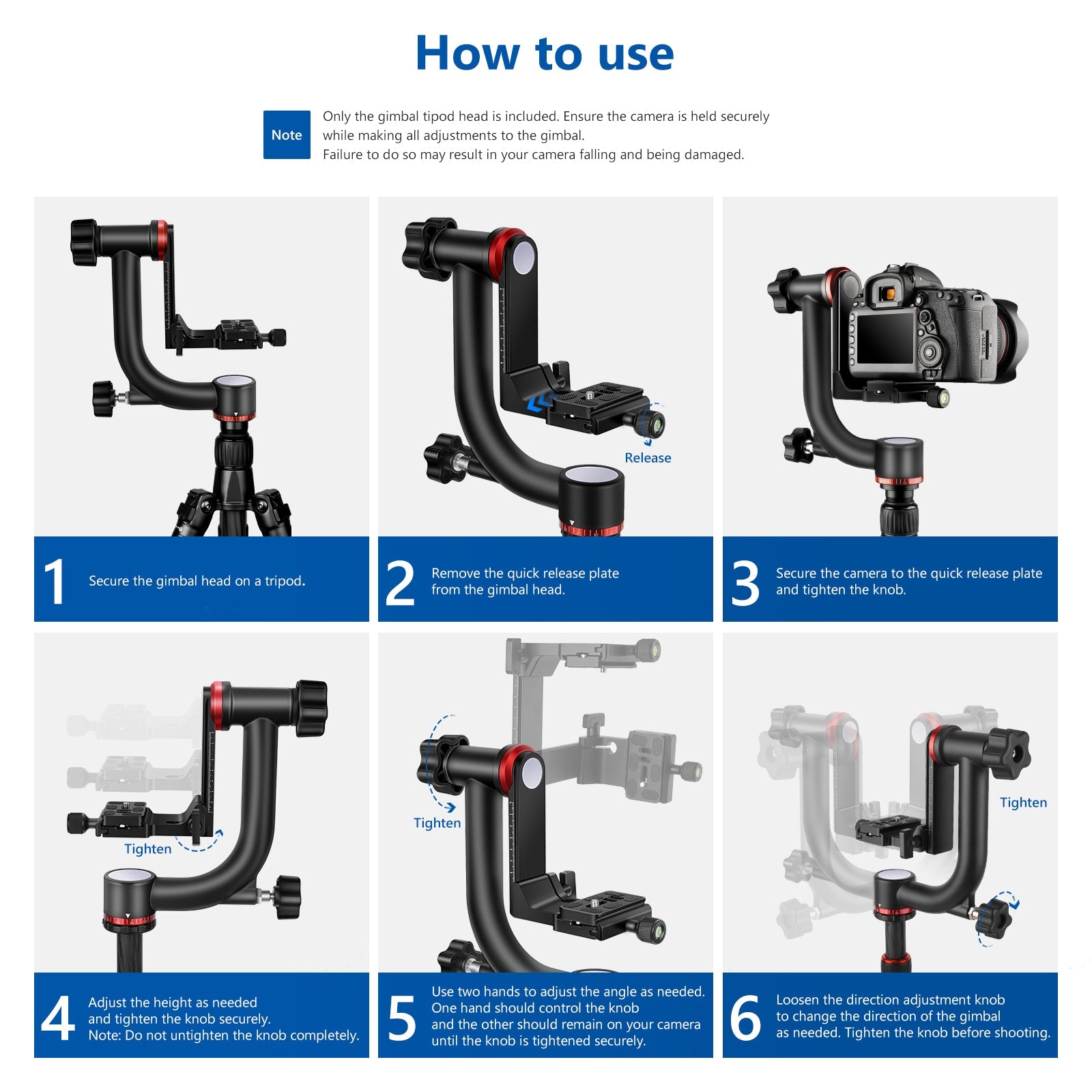 - The Gimbal Tripod Head balances your camera and lens along the vertical and horizontal axes. Built-in bearing structure makes them move smoothly and fluidly. Perfect for birdwatching and shooting wildlife and sports photography.