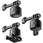 - Quick Release with Safe Lock Design- This 3 pack quick release action camera mount adapter set allows you to attach and remove an action camera in a second. Connect the action camera with the long thumb screw, put it inside the base, and rotate 90° clockwise until it locks in place. To remove it, press and hold the safe lock button, rotate 90° counterclockwise, and pull it out