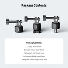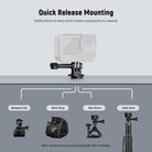 - 3 Types of Mounting Base Connection- The 1/4" thread, helmet buckle mount, and folding finger mounts are suitable for various accessories, such as desktop tripods, handgrips, selfie sticks, suction cups, magic arms, helmet mounts, chest mounts, head straps, and bike mounts