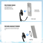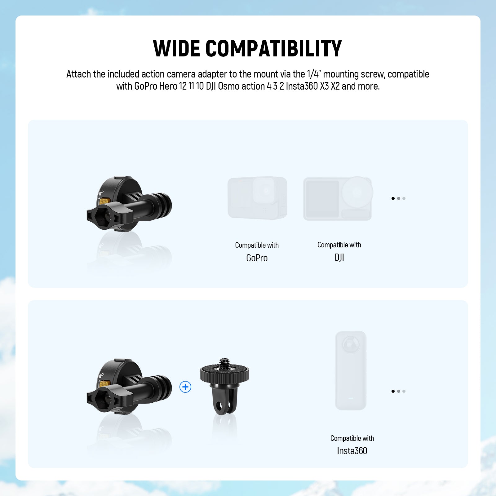 - For Phone & Action Camera- The QR magnetic phone holder is compatible with MagSafe cases for iPhone 16 15 Pro Max Plus 14 13. Magnetic metal ring accessories for phones lacking magnetic force. Mount adapters are compatible with GoPro Hero 13 12 go pro 11 10 9 8 7 Black Max compatible with Insta360 Go2 Go3 insta 360 x4 x3 Ace Pro compatible with DJI Action 5 Pro 4 3 2 compatible with AKASO brave 8 7 4 combos, etc. Note: Use the phone holder with the lanyard and metal rings for added safety