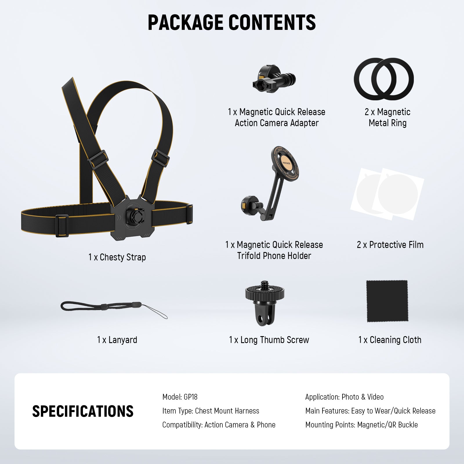 NEEWER GP18 Chest Mount Harness Compatible with Action Camera & Phone