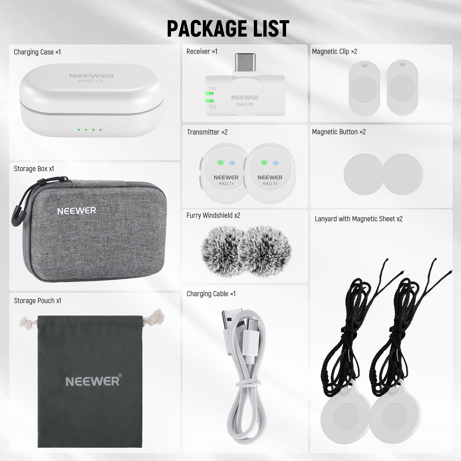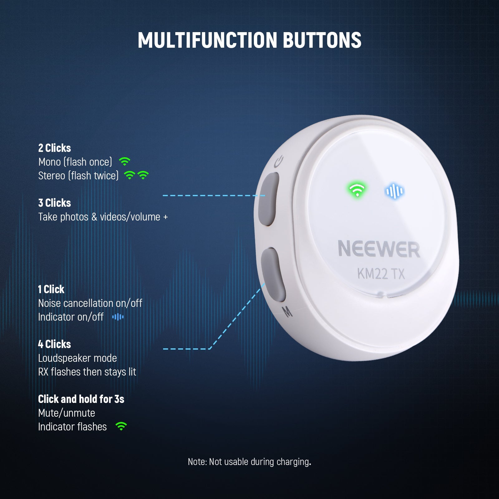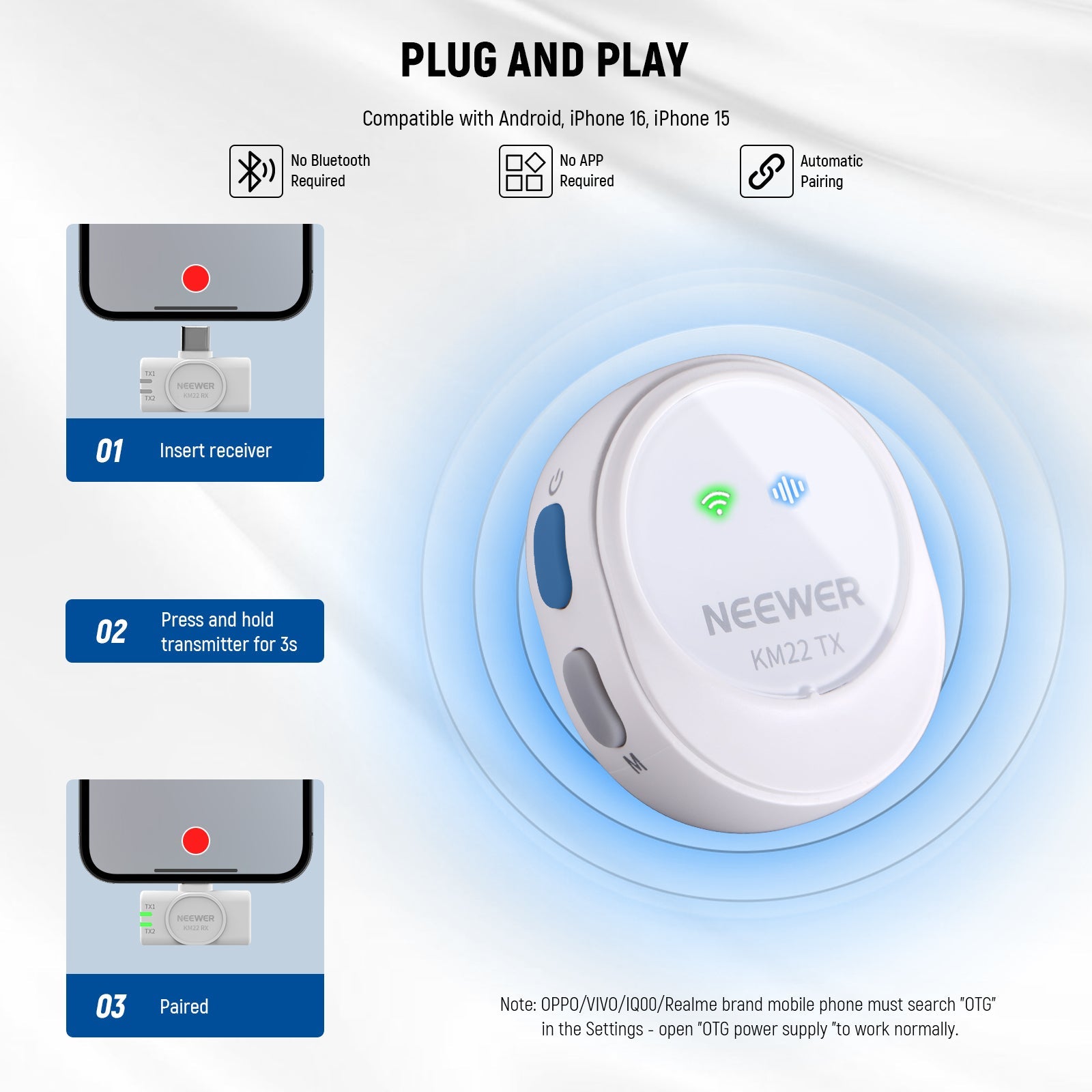 NEEWER KM22 Wireless Button Lavalier Microphone for USB C