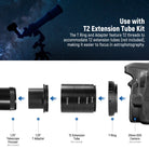 - Effortless Operation- Straight grooves make it easy to screw and unscrew the T ring. The T ring does not have electrical contacts, so you need to focus and adjust the aperture manually