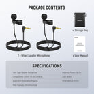 NEEWER LM5 2 Pack 6.6ft/2m 3.5mm TRS Mini Clip On Wired Lavalier Microphone