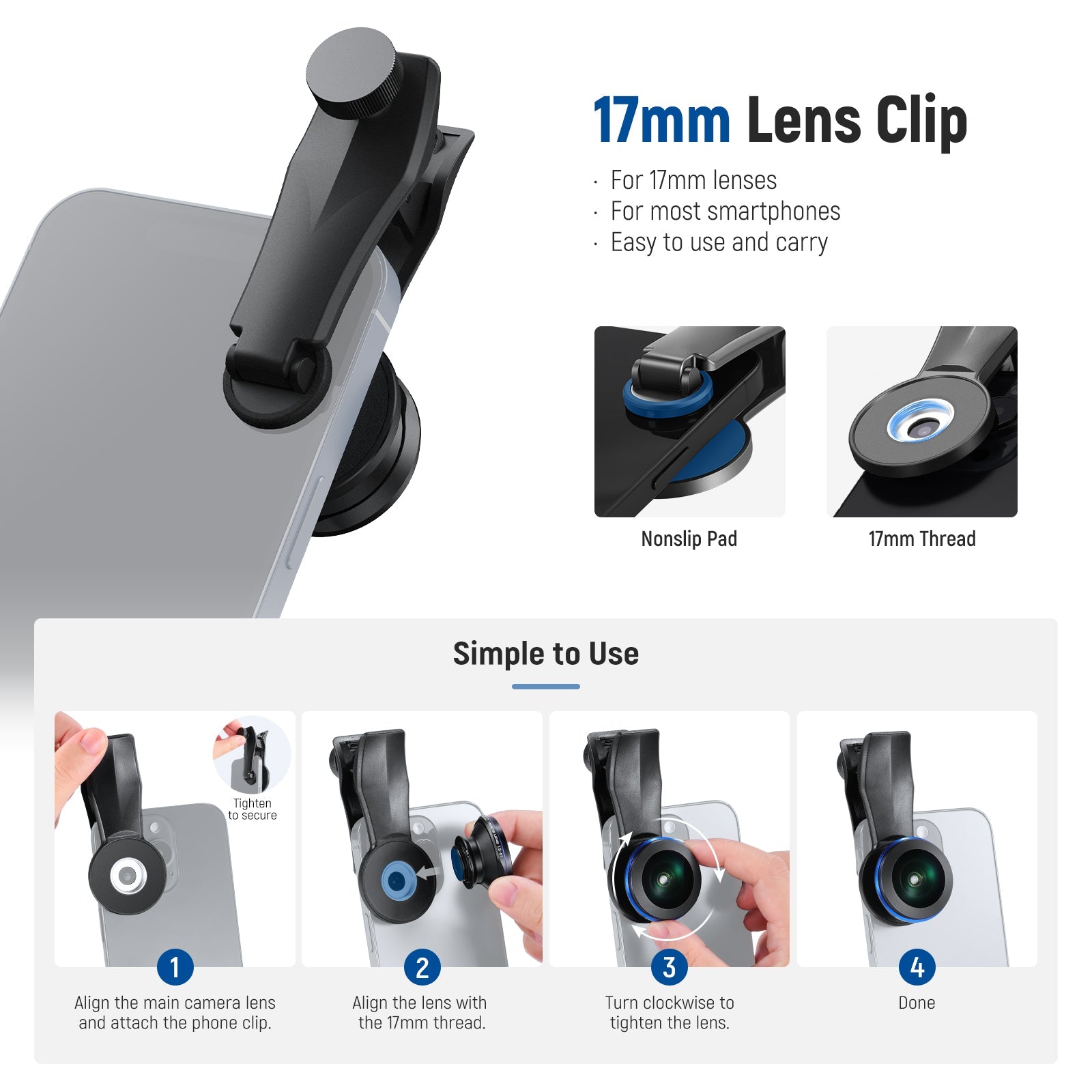 - Handy Phone Lens Clip- The phone lens clip can attach to most smartphones, compatible with iPhone 16 Pro Max iPhone 15 Pro Max Samsung Galaxy S24 Ultra and more. The lens also suits NEEWER phone cages, phone cases, and backplates with 17mm threads