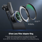 - 1 x Front Filter Adapter Ring (Adapts to 67mm Filter)