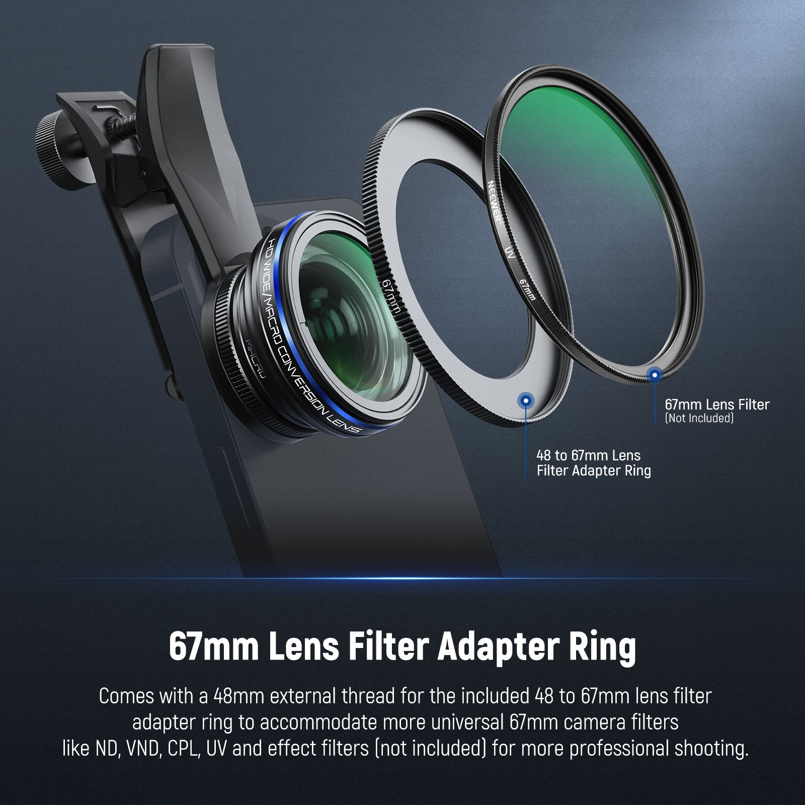 Professional 2 in 1 Lens Accessories- The phone camera lens consists of a wide angle lens and a macro lens for photography and filming, with a 17mm to 37mm adapter ring, a 17mm lens clip and a front filter adapter ring (adapts to the 67mm filter). Compatible with iPhone 16 Pro Max Plus 15 14 13 Mini compatible with Samsung Galaxy S24 S23 S22 Ultra, other Android cell phones and DSLR digital cameras. Note: The phone lens needs to be assembled on the main camera of the mobile cellphone