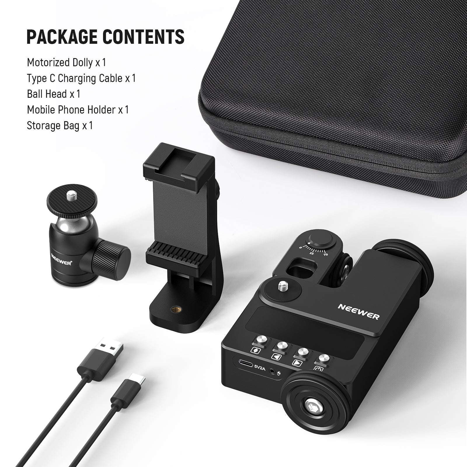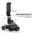 - Foldable Design & Wide Application- The dolly is foldable for easy storage. With a 1/4" screw and 360° ball head, it can mount a smartphone (phone holder accessory included compatible with iPhone 16 15 Pro Max Plus 14 13 Mini Samsung Galaxy S24 S23 Ultra, etc.), compatible with Canon Sony Nikon Fujifilm fuji DSLR mirrorless camera, and action camera of up to 6.6lb (3kg), for live streaming, interview, advertising, food videos, filmmaking, and more. The USB Type C is for charging and firmware upgrade
