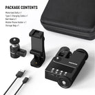 - Shooting Mode Customization- In Manual mode, you can set movement directions, speed (1–5 levels), and movement mode (even/slow). In Video mode, you can set movement directions, movement distance (66–999cm), and movement mode (even/slow). In Time Lapse mode, you can set shutter speed, frame length, number of shots, and fixed point shooting (Note: Time lapse photography needs a camera shutter cable and it is not included.)