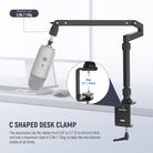 • Smooth & Flexible Multi Axis System- With five axis linkage, the table microphone holder stand swivels 360° horizontally at the base, rotates 360° and tilts 150° at the joint, and pans 360° and tilts 180° at the top, and moves without any distracting noises that could ruin your streaming. The tabletop mic boom arm extends to 32.7" when fully extended, with each boom arm 13.8" long, catering to various height and angle needs