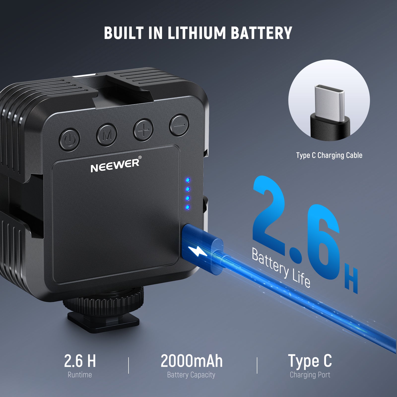 - Built in Lithium Battery & USB C Port- Equipped with a 2000mAh rechargeable lithium battery, it fully charges in just 2.6 hours, providing 2.6 hours of continuous lighting at 100% brightness. The included USB Type C port ensures convenient charging