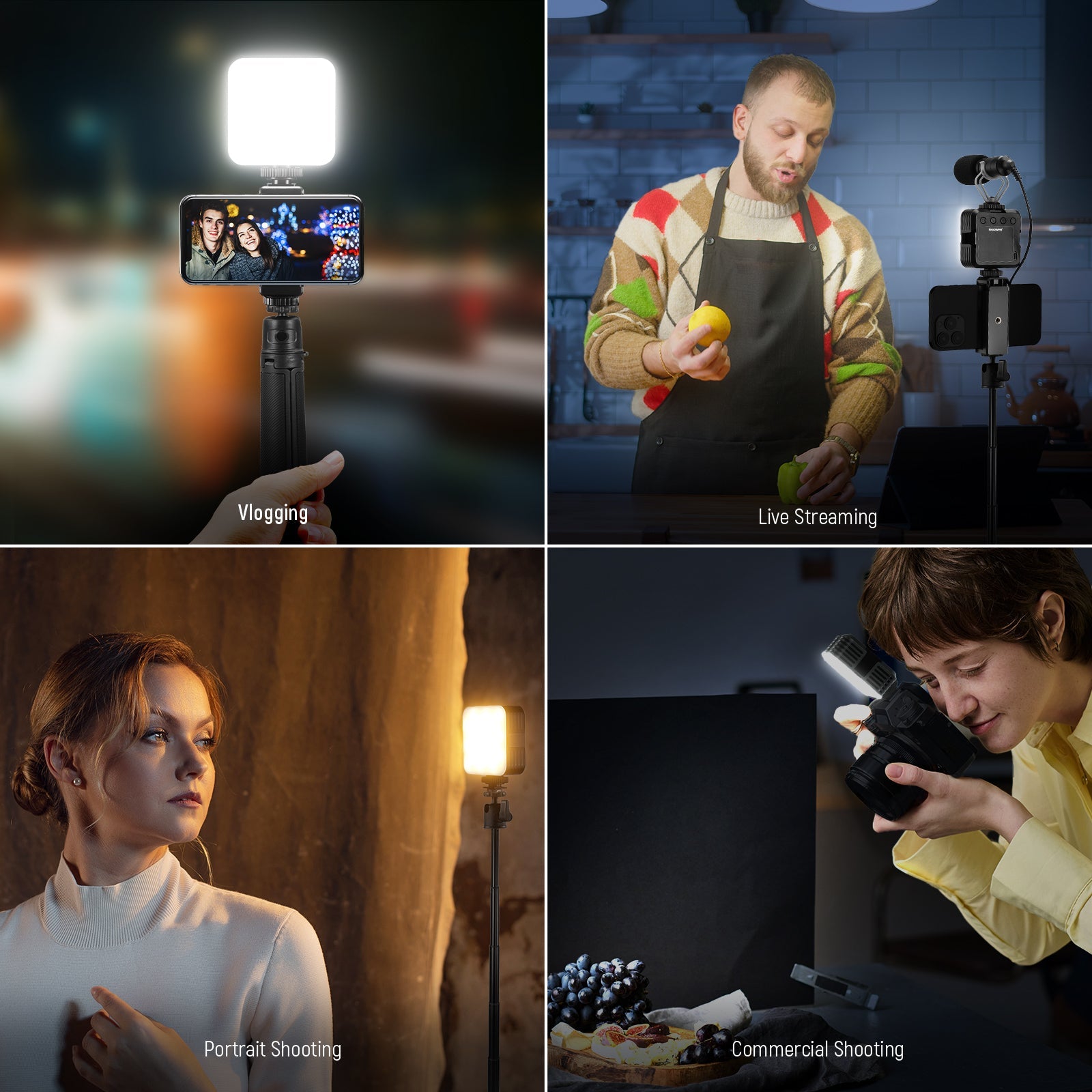 - Professional Soft LED Lighting- With 36 high brightness LEDs (18 warm + 18 white LEDs), 120° beam angle, maximum illumination of 800lux at 0.5m, this portable camera cube panel light equipment with soft light board provides soft and key or fill lighting for streamer live streaming, YouTube Tiktok video recording, studio photoshoot, selfies, makeup artist filming, vlogging and portrait photos as content creator essential and influencer must have videography and photography gear