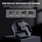 - 100W PD 4 Channel Fast Charging- The NW-F4 efficiently charges up to 4 NPF batteries simultaneously. It supports 100W PD ultra fast charging when used with a 100W PD charger (sold separately), having four 10500mah NP-F970 batteries fully recharged in 4.5H, or four 7800mah NP-F970 batteries in 3H. Note: To achieve full power output, it’s highly recommended to use a 100W PD charger or higher. A 100W PD USB C to USB C fast charging cable is included