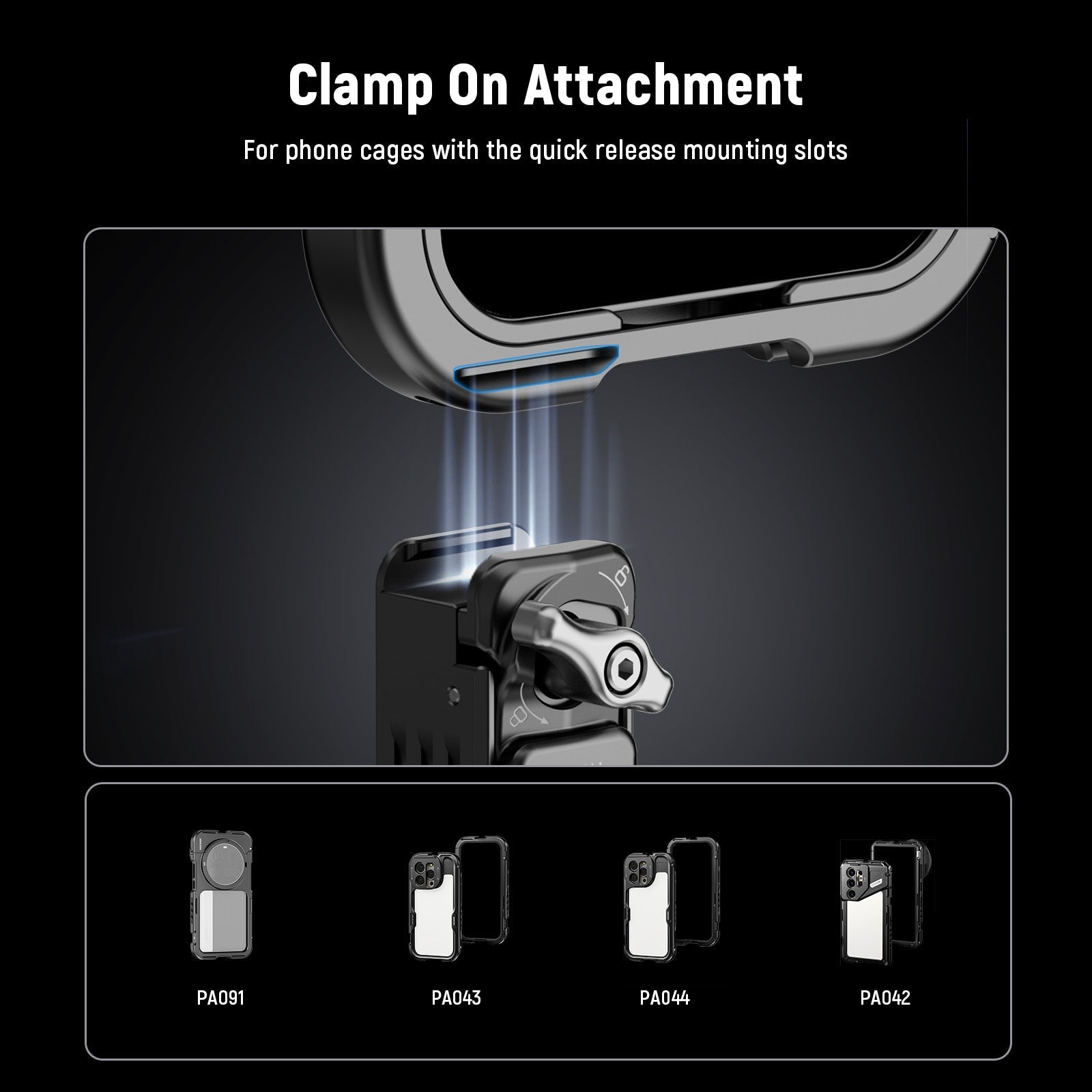 - Clamp On Phone Cage Attachment- Built with a quick release clamp, this phone tripod mount adapter as phone camera photography accessories and gear can instantly connect to a NEEWER phone cage with matching mounting slots, such as PA043/PA044 for iPhone 15 Pro/15 Pro Max, PA073/PA074 for iPhone 16 Pro/16 Pro Max, PA042/PA082 for Galaxy S24 Ultra/S25 Ultra, and PA091 for Xiaomi 15 Ultra