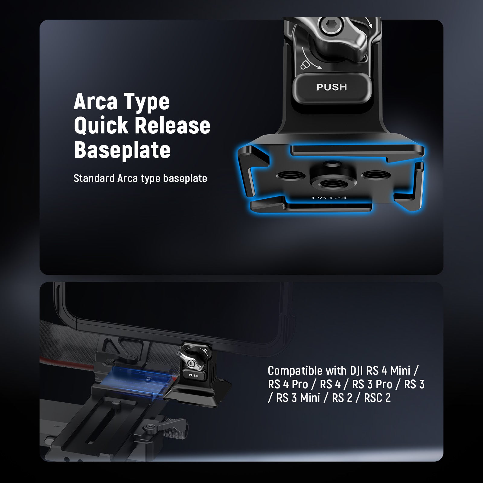 - Arca Type Quick Release Baseplate- The standard Arca type base is compatible with a broad range of tripod heads, ball heads, and panoramic fluid heads to take your mobile photography and videography to another level