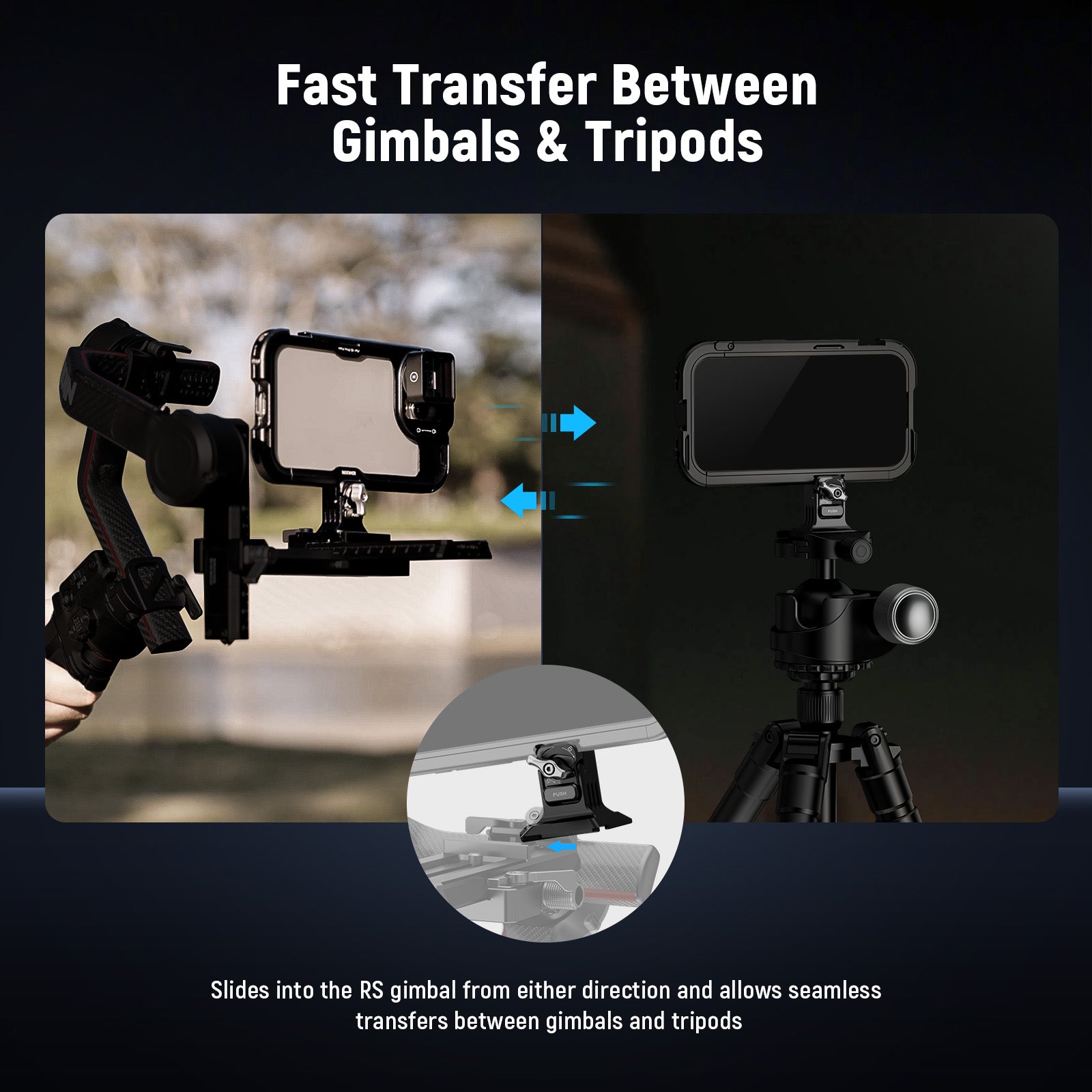 - Seamless Tripod/Gimbal Transfers- Apart from most tripod heads, this adapter mount is also compatible with DJI RS 4 Mini, RS 4 Pro, RS 4, RS 3 Pro, RS 3, RS 2, and RSC 2 handheld gimbal stabilizers—enabling smooth installation in any direction and seamless transfers between two types of equipment