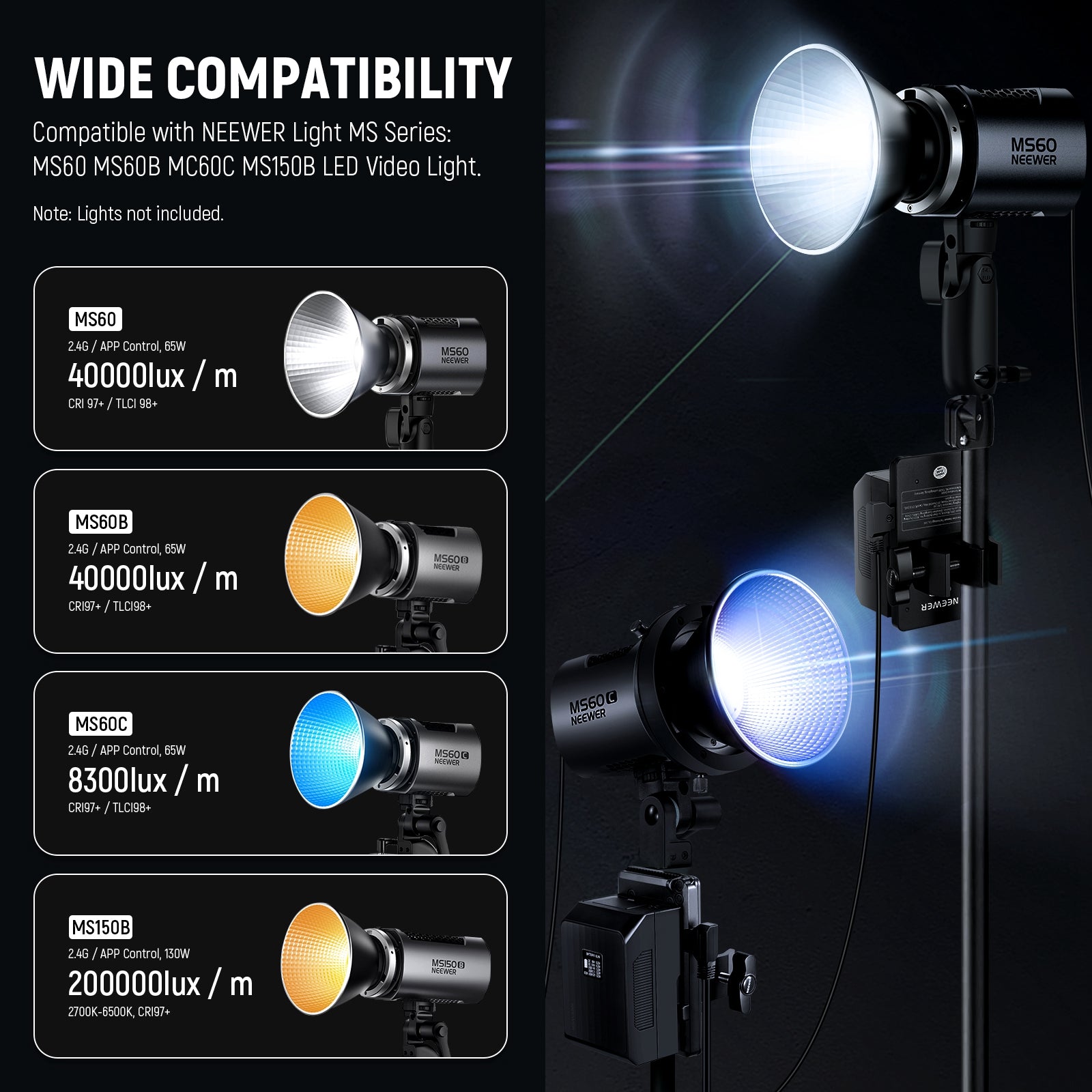- D Tap to DC Power Cable Included- Comes with a 6ft/180cm length D Tap to DC power cable for stable and continuous power supply for NEEWER Light MS Series: MS60 MS60B MC60C MS150B LED Video Light