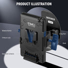 - Convenient Quick Release Button- Press the quick release button to install or remove the V mount battery in a second