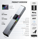 - Responsive RGB Touch Bar/17 Scenes- In HSI Mode, you can get all the RGB colors by blending hue, saturation, and brightness intensity or just gliding your fingertip over the RGB touch bar (Note: The lock button below the touch bar can lock the touch bar to prevent accidental touch). In Scene Mode, 17 dazzling scenes can elevate your video creation with realistic light effects.