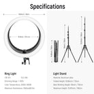 - 19-inch Large Ring Light & Sturdy Tripod Stand- 512 SMD LEDs give off great light (color temperature 3200K to 5600K, CRI 97+, TLCI 98+, 0%-100% brightness adjustable, 1% fine-tuning), perfect for the vlog, livestream, and selfie. The light ring tripod is made of aluminum alloy. Adjustable height ranges from 31.5 inches to 70.87 inches; a durable 3-leg stage design and solid locking system keep all of your equipment safe.