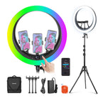 - Versatile 19" RGB LED Ring Light- RP19C is a 19" large RGB ring light for makeup, live streaming, Zoom calls, video conferencing, and selfies. With 864 LEDs, 42W output, 0-100% dimming, 2800lux/0.5m illuminance, CRI 97+, and a circular shape, it produces a bright, diffused, and flexible light source with accurate color reproduction for everyday creations