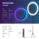 - 2 USB A Ports for Device Charging- Designed for all day streaming and long meeting sessions, the ring light is equipped with 2 USB A ports for charging your smartphones. Note: Charging cables are not included