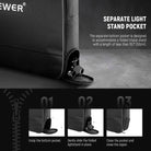 - Separate Section for Folded Light Stand- There is an individual bar storage section at the bottom, which can accommodate a folded light stand/tripod up to 19.7"/50cm long, keeping your ring light with a delicate surface separated from the metal stand for optimal protection against scratching damage on the light