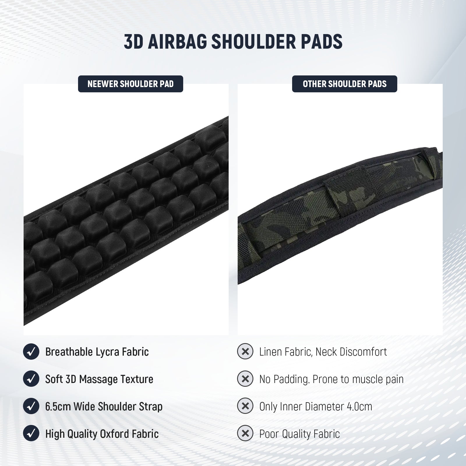 - Air Cushioned Backpack Straps Shoulder Pads- Each shoulder pad (measures 13.8"x3.3"x0.8"/35x8.5x2cm) features 33 decompression air cells to evenly distribute the pressure and reduce shoulder pain when carrying heavy photography equipment and cameras