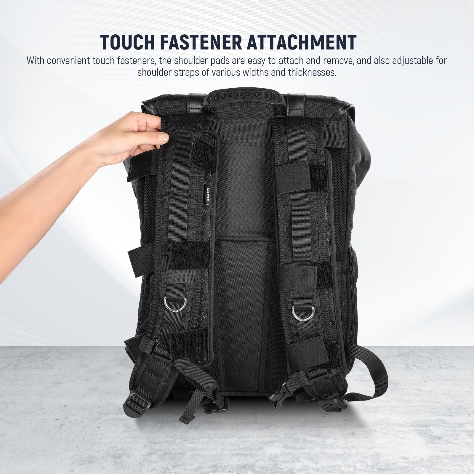 - Touch Fasteners Attachment- With convenient touch fasteners, the shoulder pads are easy to attach and remove, and also adjustable for shoulder straps of various widths and thicknesses
