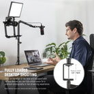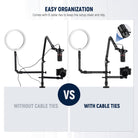 - Organized & Space Saving Setup- This collapsible center column and two cross arms respectively folds down to 13.2"/33.5cm, 12.4"/31.5cm, and 10.6"/27cm. Supplied with 8 cable ties for organization, saving desk space and ensuring a neat environment for content creation