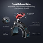 - Versatile Super Clamp- With an adjustable jaw opening, the clamp fits around a rod, tube, pipe, and crossbar 0.7"-2" (18-50mm) in diameter or a flat desk up to 2"/50mm thick. Adjust the opening with the handy lever