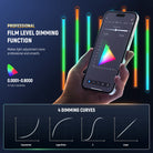 • Precise PWM Dimming- The portable LED light wand allows 4 dimming curves (Linear/S/Logarithmic/Exponential) and X/Y dimming patterns, enabling professional, smooth brightness adjustment. Multiple modes include HSI for 36,000 colors, RGBCW for 0-255 color ratio tuning, and RESCO & LEE mode to fully restore 40 film level color gels, swiftly adjusted to scene specific colors. Gently glide a finger through the touch bar to select colors for your photography, which can be deactivated with a click