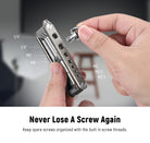 - 360° Adjustable Angles- The 360° adjustable fold out tools can adjust to the perfect angle, and the tool rack also doubles as a handle for more precise torque to tighten screws based on your needs. Two extra screw slots on the rack help adjust the tightness of rotation to your liking
