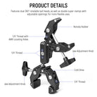 - Umbrella Clamp For Flat Surfaces and Round Poles- Securely grip objects of up to 0.6"-2.4"/14-60mm in diameter, the two super clamps (one with V shaped grooves and pivoting tips) are perfect for flat surfaces like desks, chairs, even clip on selfie sticks, light stands, crossbars, bicycle handlebars, umbrella and other cylindrical objects, compatible with DJI Ronin-M Ronin MX compatible with Freefly Movi 25mm and 30mm gimbal stabilizer rods