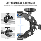 - Flexible Angle Positioning- Connected by two 360° rotatable ball heads, this magic arm can be easily adjusted to any desired angle, and secured by the screw knob. Note: The magic arm and super clamps are attached and cannot be used separately