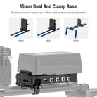 - 15mm Dual Rod Clamps- Includes a dual rod clamp base to mount the battery plate on 15mm rails for vertical or horizontal use, compatible with SmallRig and NEEWER shoulder rigs SR001 SR002 SR003 SR004. Also comes with a number of 1/4" screw holes and a M4 thread hole to attach LED lights, microphones, monitors, brackets, grips, and more