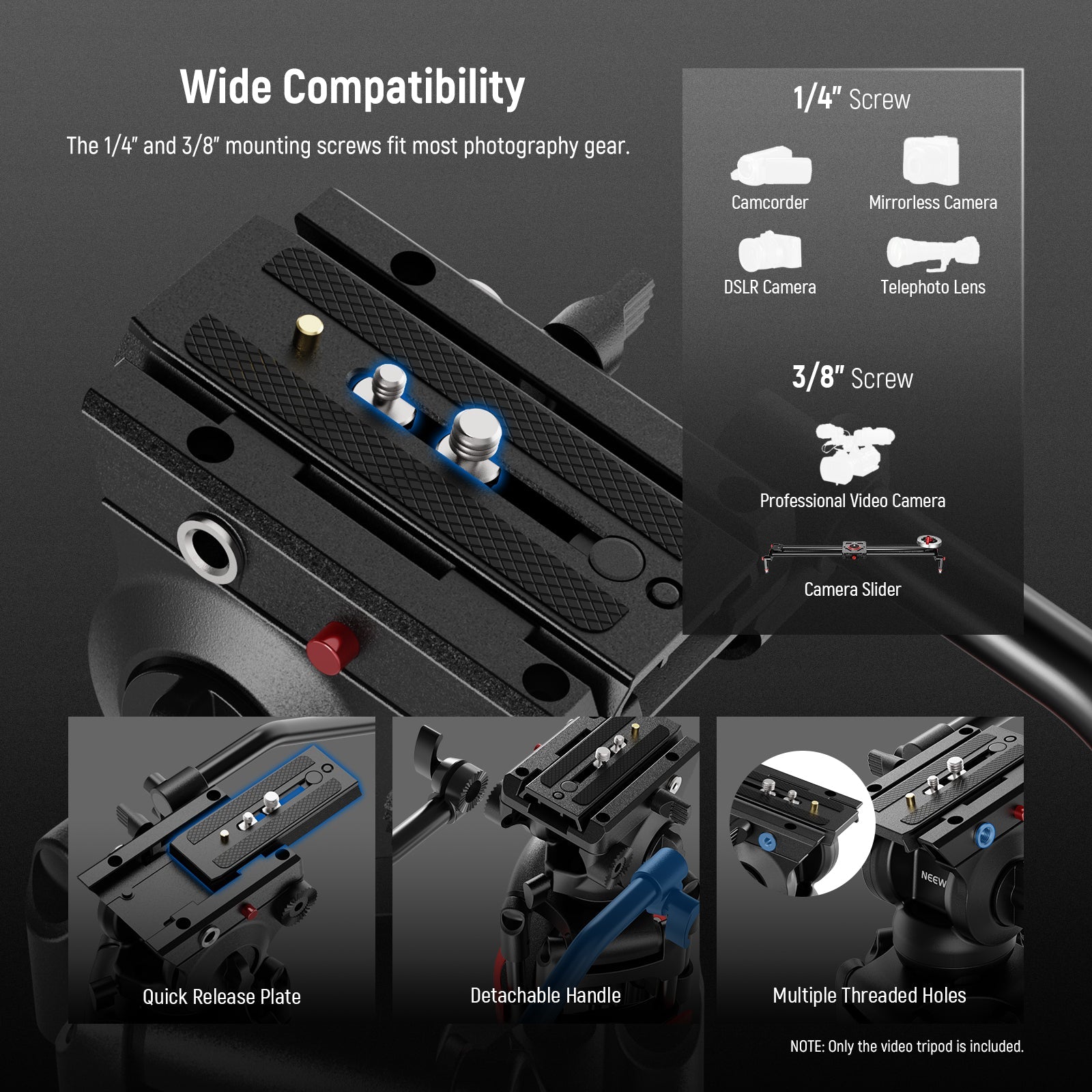 - Adjustable Mount & Arca Type QR Plate- The camera mount offers flexible positioning, with up to 3.9"/10cm horizontal movement and 1.2"/3cm vertical elevation for precise alignment. It features an Arca type quick release plate with a 1/4" screw for fast camera setup/removal, supporting payloads up to 4.4lb/2kg. The teleprompter base includes 1/4" & 3/8" screw holes for flexible mounting on a tripod, desktop stand (NEEWER TL283), or a microphone boom arm (NEEWER MAST002), all sold separately
