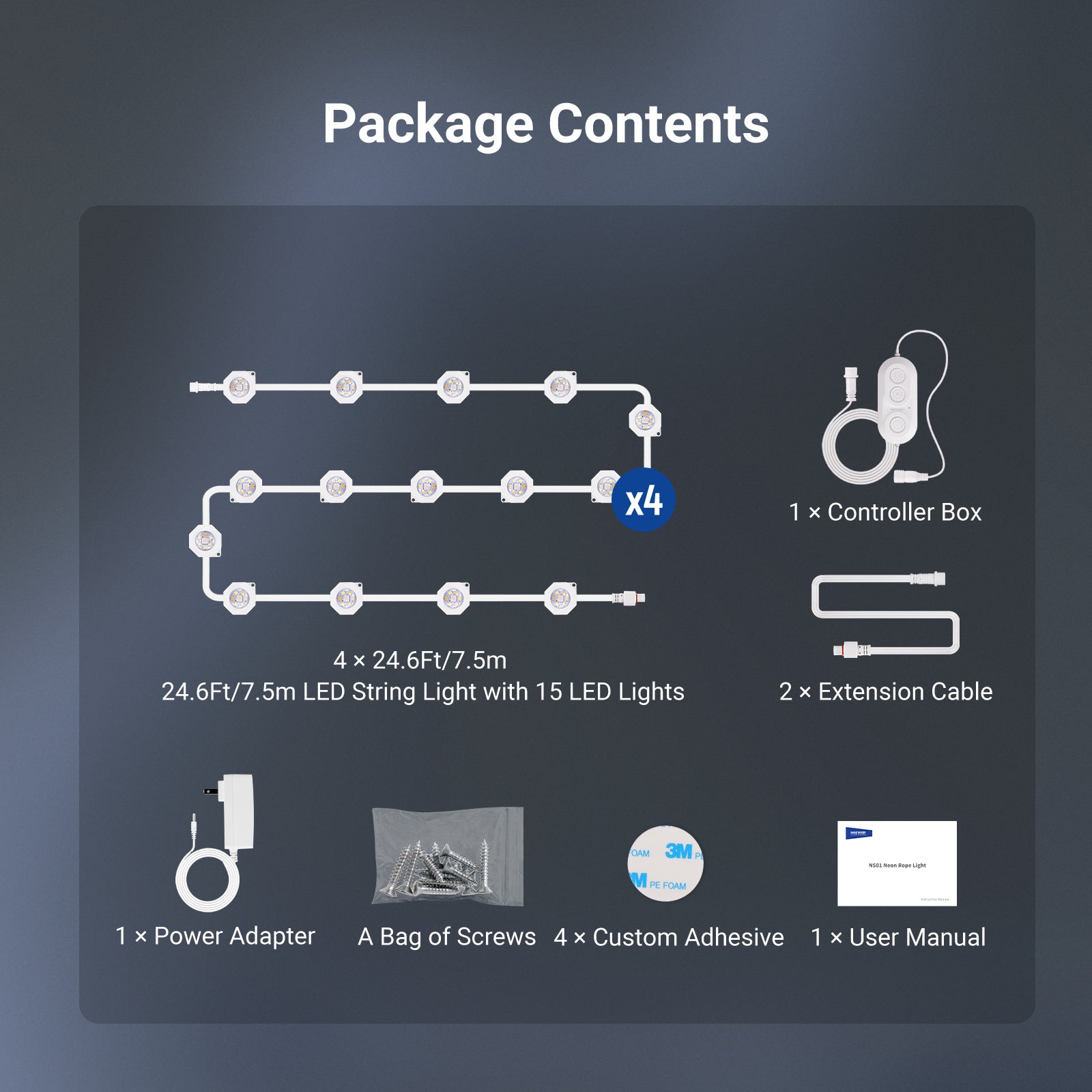 NEEWER offers smart lights, including corner floor lamps, RGB LED strip lights, permanent outdoor lights, and more. These smart lights are powered by the NEEWER Smart AI Lighting Engine, allowing AI-generated lighting effects tailored to your preferences—simply send commands via voice, text, or images. Brighten your space indoors or outdoors with lighting that adapts to you.