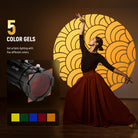 - Interchangeable Gobos & Color Gels- 16 patterned gobos and 5 color gels provide unique and artistic light effects. 4 way light baffles easily change the light output into triangles, rectangulars, and linear shapes. Separately purchase an aperture to flexibly control beam angles. Note: Gobos have sharp edges, please handle with care