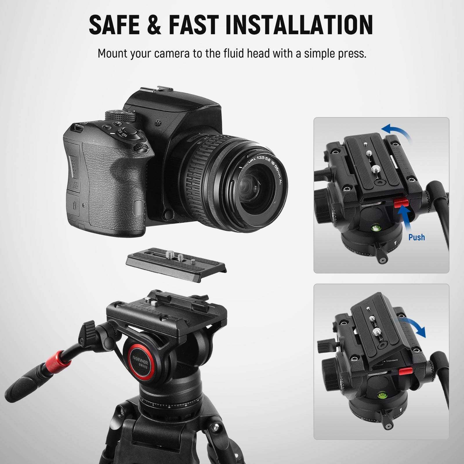 NEEWER TP75 74" 189cm Pro Video Tripod with Fluid Head