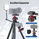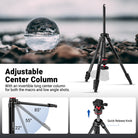 - Detachable Low Profile Panoramic Ball Head- Enhanced stability with a lower center of gravity, φ40mm scaled pan base, and U shaped groove for smooth panoramas and 90° vertical shots. It is detachable for mounting on other camera tripod stands, monopods, and sliders via a 3/8" thread. A 1/4" thread on the QR clamp enables more flexible accessory mounting
