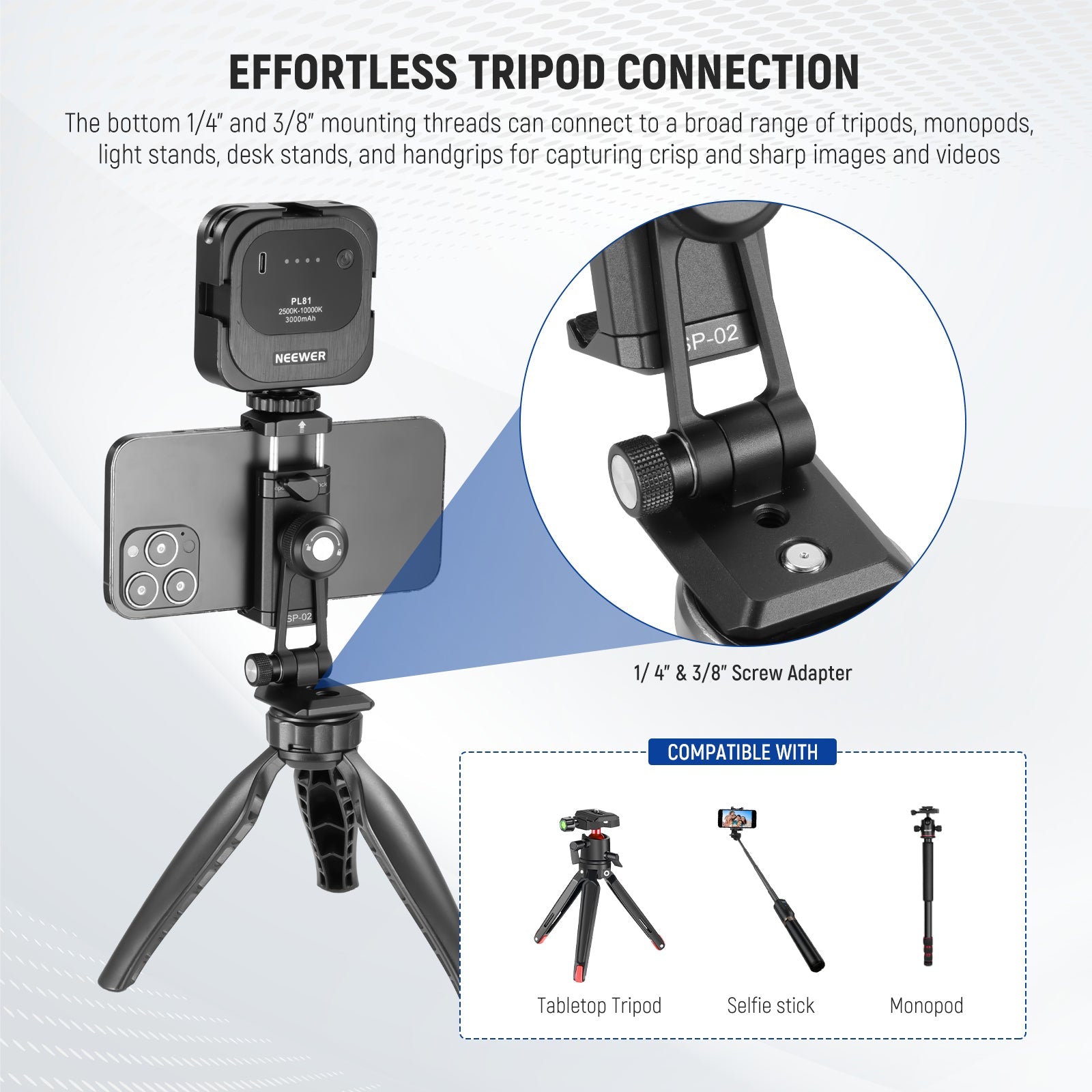 • Foldable & Portable- The foldable tripod can collapse down to 18.5” (47cm) and slide into the carrying bag for easy storage and transportation