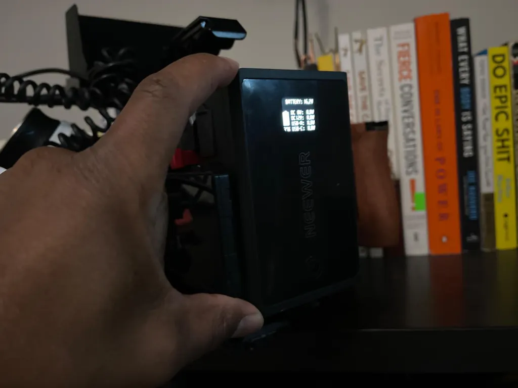 - Real Time Visible Display- The 1.12" OLED screen provides real time battery status all at a glance, including alerts for abnormal conditions. The nonslip designs on both sides are for secure handling during use. Note: If no connection while charging R5/R5 C/R6/R7, just turn off the camera, unplug all cables, reinsert the battery, then resume charging