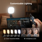 Multifunctional Light Stand & Adjustable Height/Angle- The detachable stand with a 1/4" screw attaches the webcam light to the top of a monitor, with 4 adjustable height levels. Doubles as a mini desktop stand to hold both the light and a smartphone for phone camera photography/videography as social media content creator essential photo film prop, streamer influencer must have gear. The light head tilts 180° front to back and rotates 360° horizontally from left to right for flexible lighting