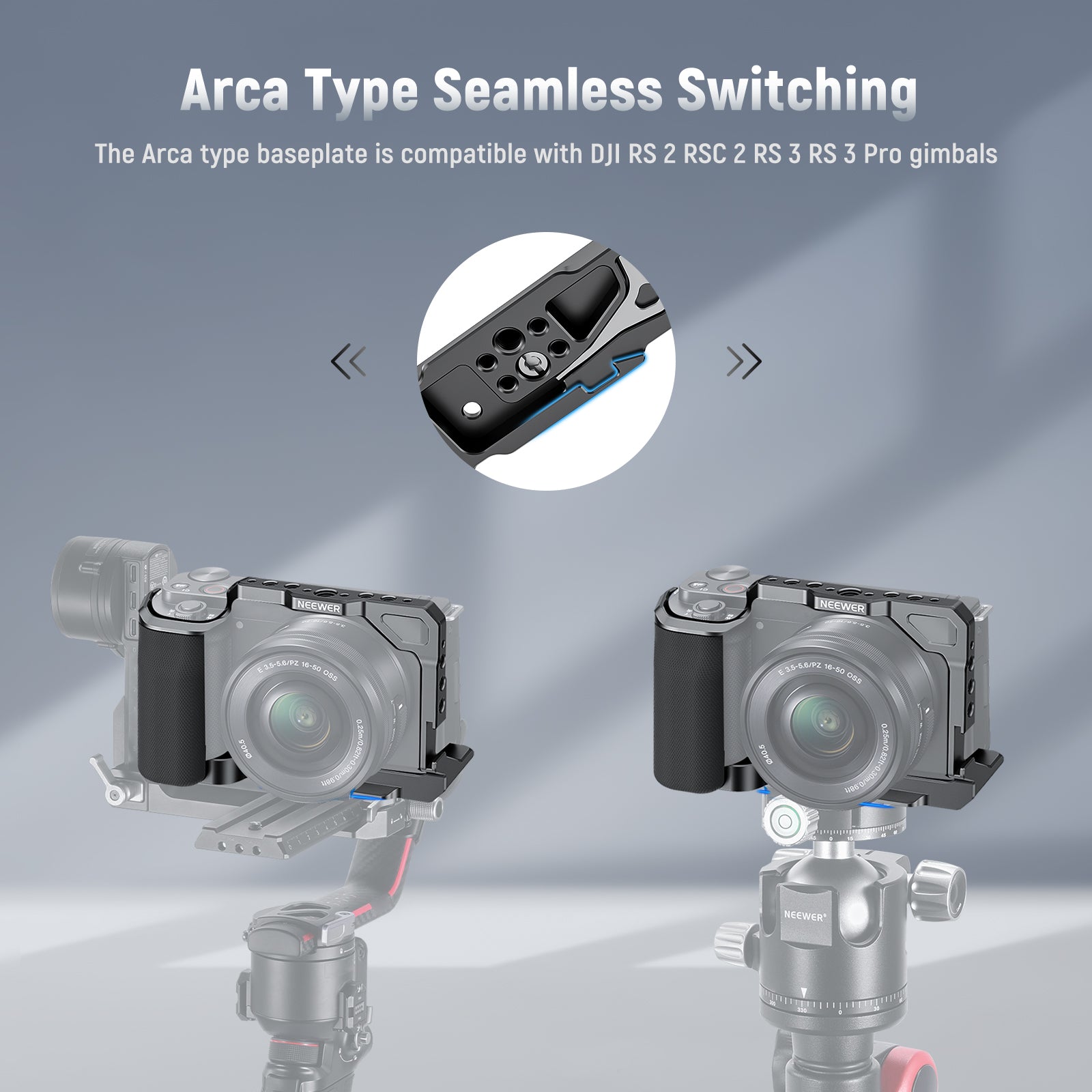 - Arca Type Seamless Switching- The Arca type baseplate is compatible with DJI RS 2 RSC 2 RS 3 Pro gimbals as well as a wide variety of tripod heads—enabling you to seamlessly transfer the camera from a tripod to a handheld stabilizer for different styles of shooting