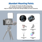 - Abundant Mounting Points- 1/4" threads, 3/8" threads with ARRI locating holes, and a cold shoe can connect a microphone (CM14 PRO), magic arm (UA012), LED light (PL81), RGB light (RGB62), and other accessories. The cage can be mounted on a tripod in vertical or horizontal directions. Compatible with SmallRig top handles side handles monitor mounts and other accessories