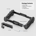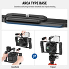 - Dual Grips & Tripod Mounted- The two ergonomic hand grips with synthetic leather texture and finger contours offer you a comfortable and firm grip on the cage for handheld shooting, or mount it on a tripod head via the 1/4" screw holes on the bottom, for seamless switching between handheld and tripod shooting, thanks to its Arca type base