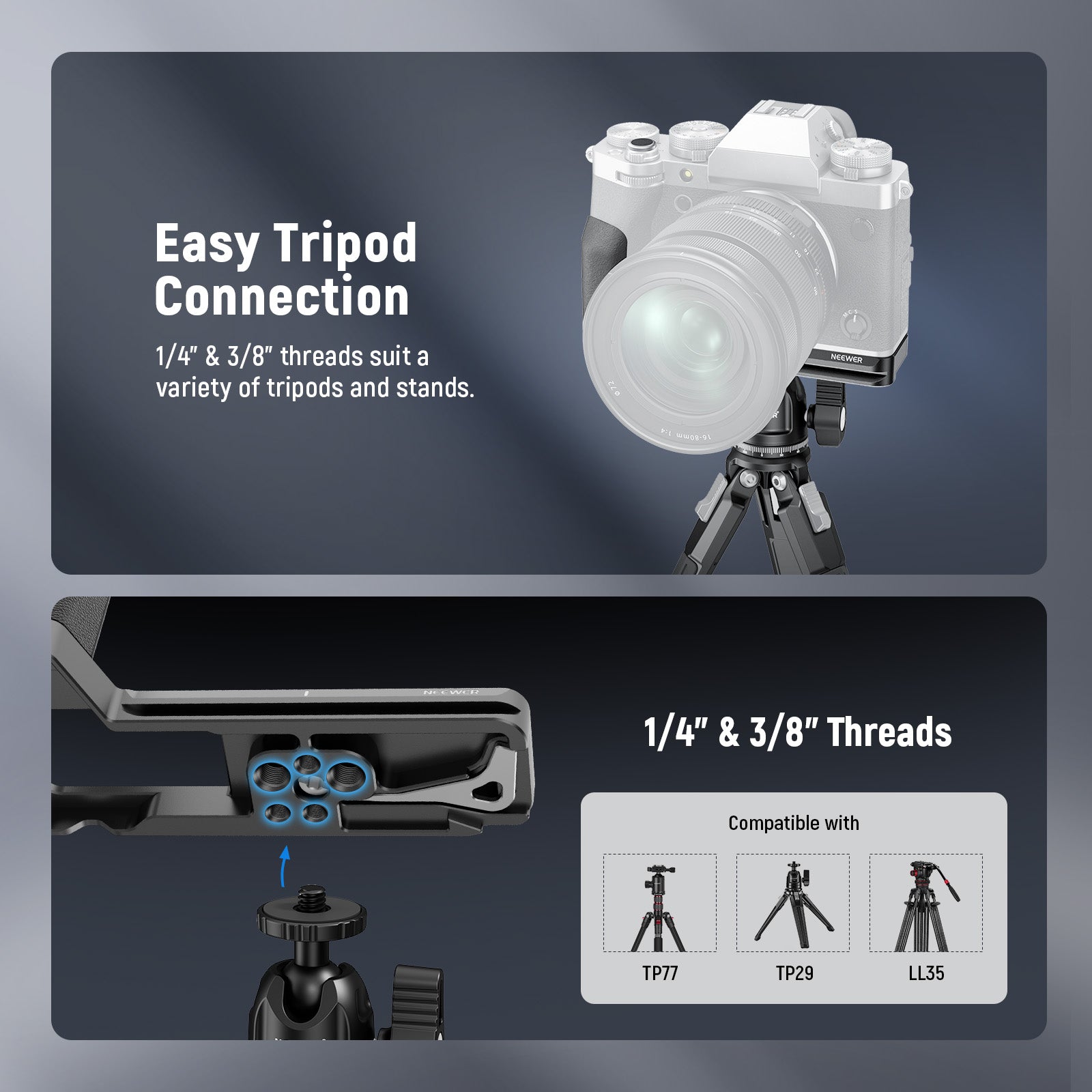 - Multiple Mounting Threads- 1/4" and 3/8" threads on the bottom can connect to tripods, handgrips, magic arms, and are compatible with SmallRig accessories