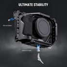 •  Secure Installation Via Two Points-  Firmly lock the camera through a 1/4" bottom screw and an anti twist pin. A nonslip rubber pad protects the camera from scratches. Use the double head screwdriver under the cage to tighten all the screws for reassuringly secure installation