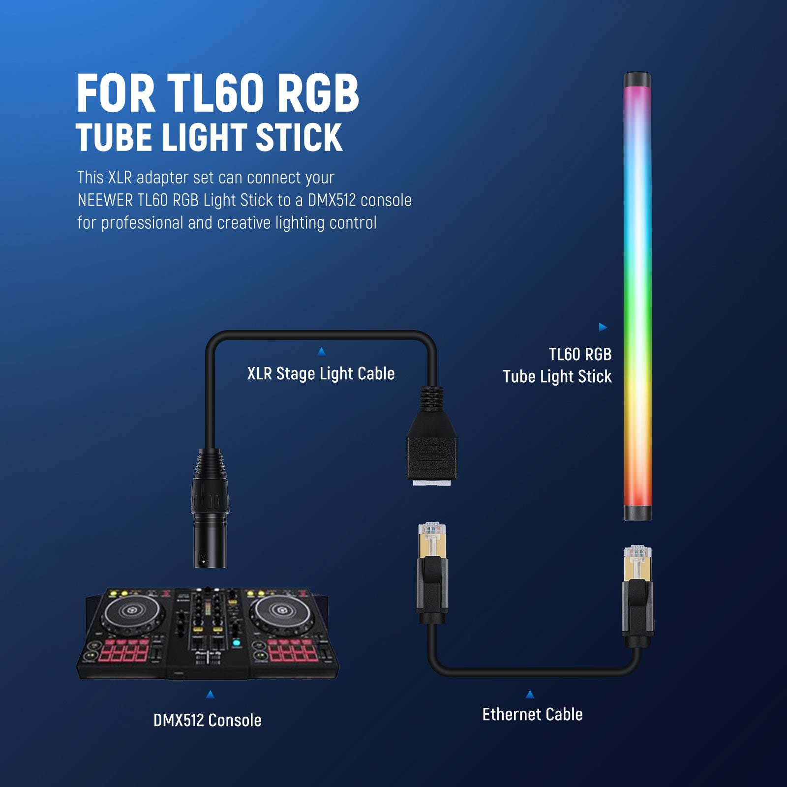 - For RGB Tube Light Stick- This XLR adapter set can connect your RGB Light Stick to a DMX512 console for professional and creative lighting control (for NEEWER TL60/TL90C/TL120C RGB tube light ONLY)